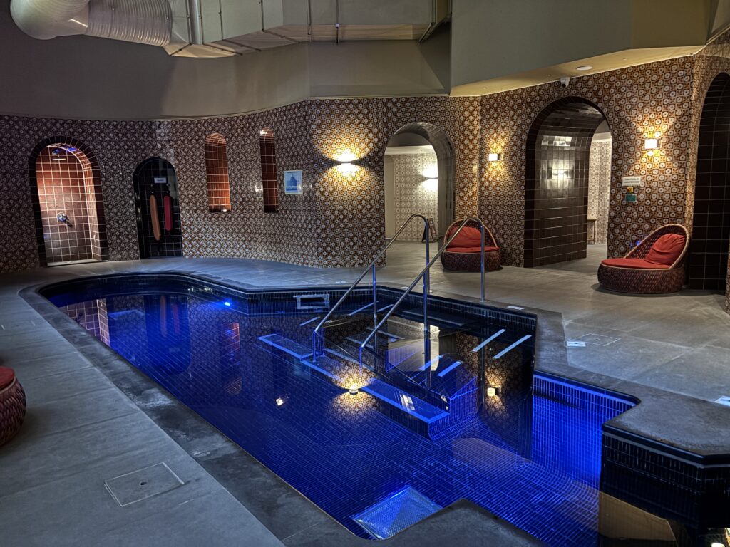 設備で言うと、会議室や豪華絢爛なバンケットの他にも、コンパクトではあるけど24時間のジムとプール、ミストサウナもありました。