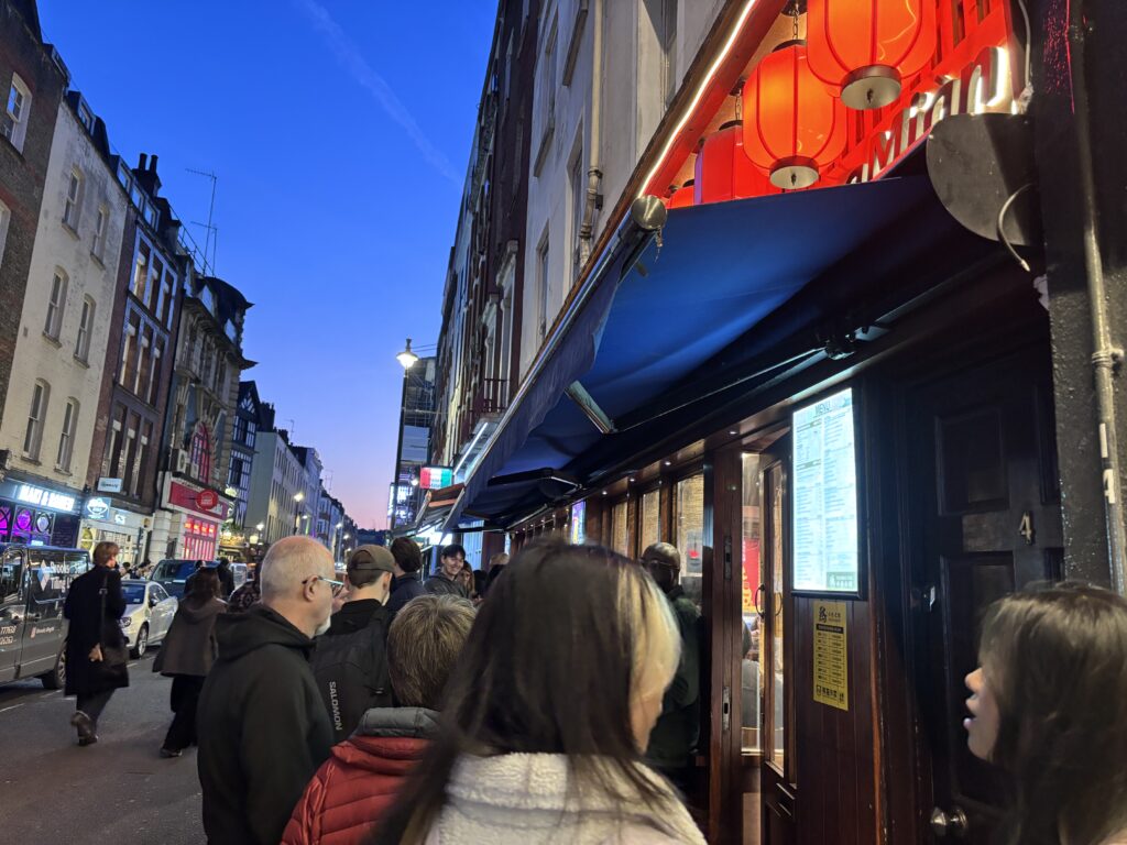ケンブリッジにいた時に仲良くしてもらっていたお友達とThe Noodle Innに行ってきました。他の友人も夫も「めっちゃ美味しいけど並ぶ!でも美味しい!」と言っていたので楽しみにしていました。私たちは平日18時半頃にお店に到着して30分ほど並んで席にありつけました!体感はそんなに待った気もしなかったのですが、基本的には屋根のない場所に並ぶので雨が振ったら辛いかなあとは思いました。