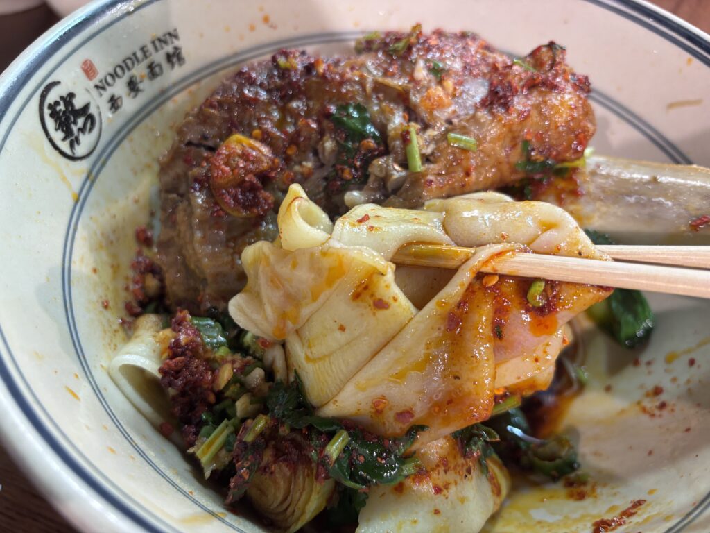 今回の刀削麺の凄さは、肉もなんですが、ズバリ「麺」だと思います。麺がもちもちで乾麺とは全く別物。麺自体に味があって小麦の旨さをダイレクトに感じることができます。感動!