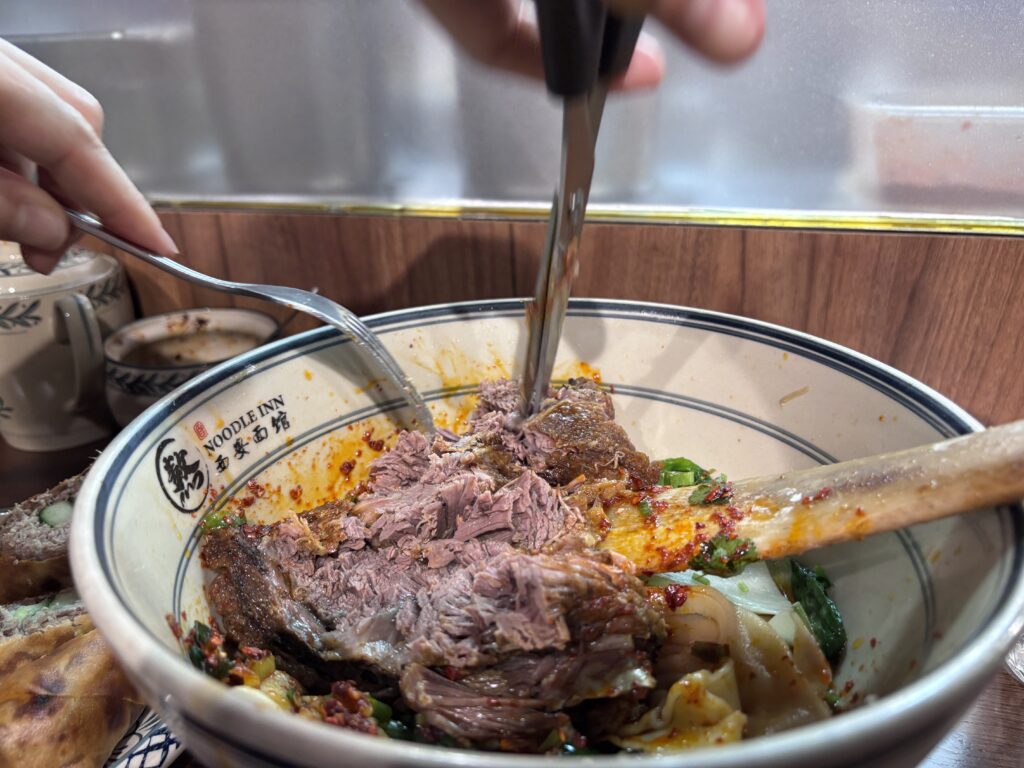 お肉はお箸で簡単に骨から取れますが、店員さんがお肉をハサミで切ってくれました。なので見た目に反して食べやすいです。